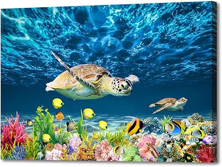 Amazon.com: Blue Ocean Wall Art for Bathroom Deep Seaview See Turtle Canvas Prints Undersea World Painting Artwork Kitchen Bedroom Home Decor, Framed Ready to Hang 16x24inch: Posters & Prints