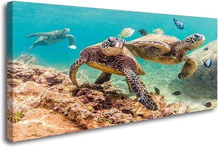Amazon.com: ArtHome520 Blue Sea Ocean Wall Art Canvas Print Sea Painting Turtle Picture Home Decor for Living Dining Room Modern Fashion Framed Panel (20''x40''): Posters & Prints