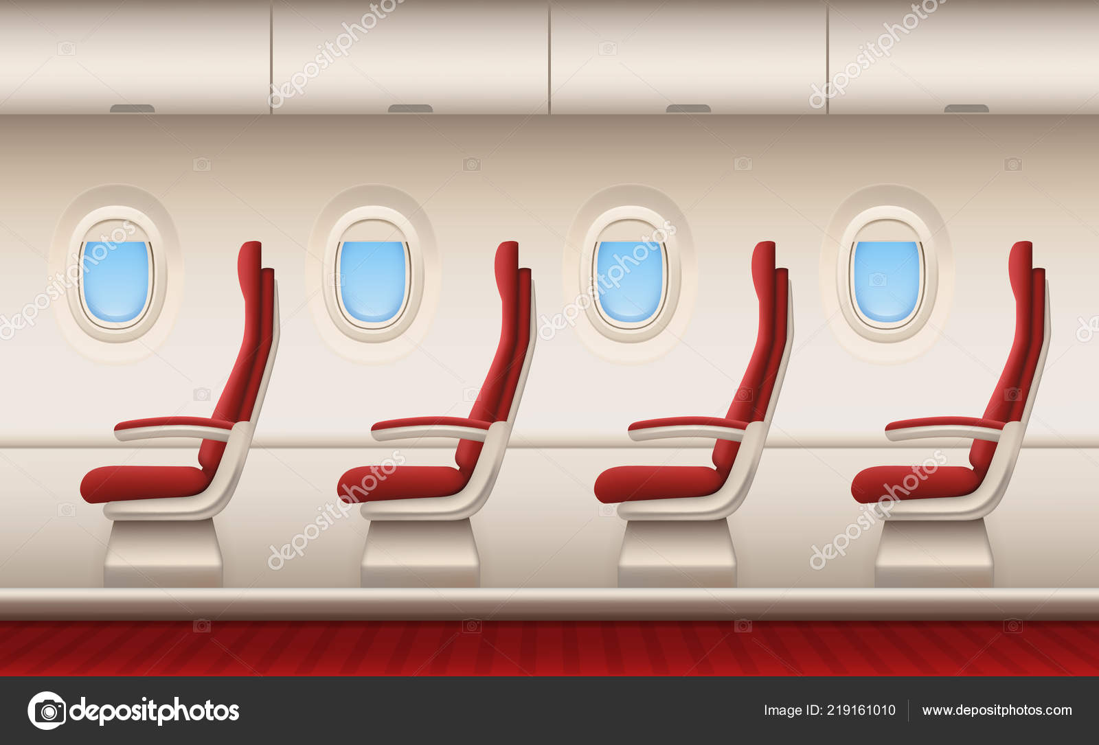 Passenger Plane Interior Aircraft Cabin With White Closeup Windows Portholes Plane Inside Comfort Chairs Vector Realistic Background Stock Vector Image By C Onyxprj 219161010