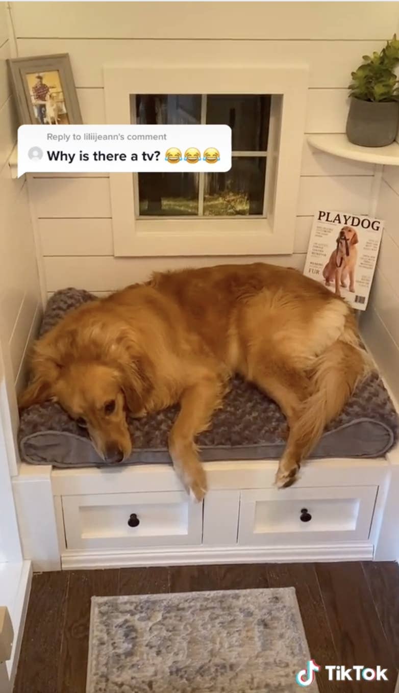 Golden Retriever Shows Off His Luxurious Indoor Doghouse